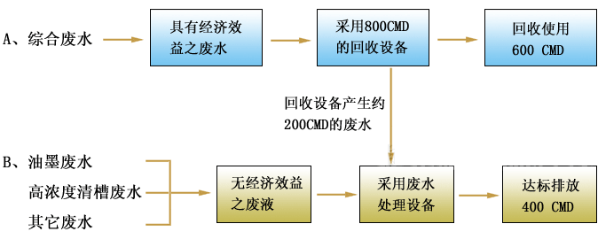 線路板廠回收水及排放水情況如下圖所示:(廢水總量以1000 CMD計)