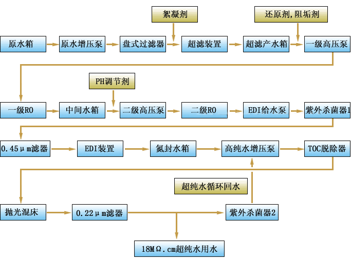 太陽能超純水係統工藝流程示意圖如下: