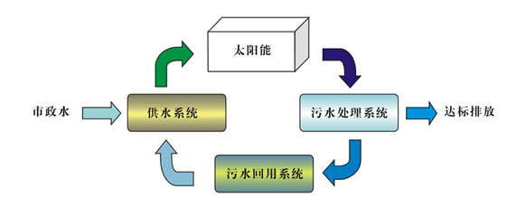 太陽能廢水回用係統工藝流程示意圖如下: